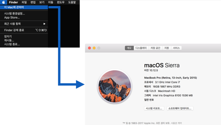 중고 구매시 구매하는 맥의 기종과 연식을 가장 정확히 확인하는 방법은 아래와 같습니다.