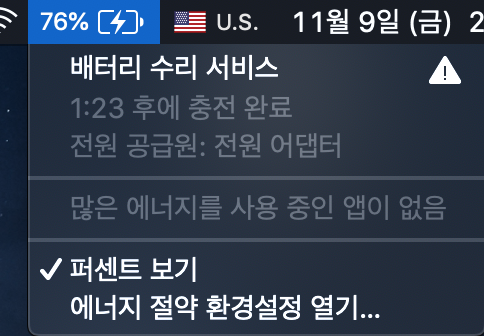 배터리에서 가장 중요한건 배터리 헬스 입니다. 대부분 사이클수를 확인합니다. 그러나 배터리 상태를 가장 잘 보여주는 항목은 배터리 헬스입니다. 배터리 헬스는 macOS의 시스템 정보에서는 보여주지 않습니다. 따라서 배터리 헬스를 확인하려면 코코넛배터리 라는 응용프로그램을 다운받아 사용하는게 가장 좋습니다.