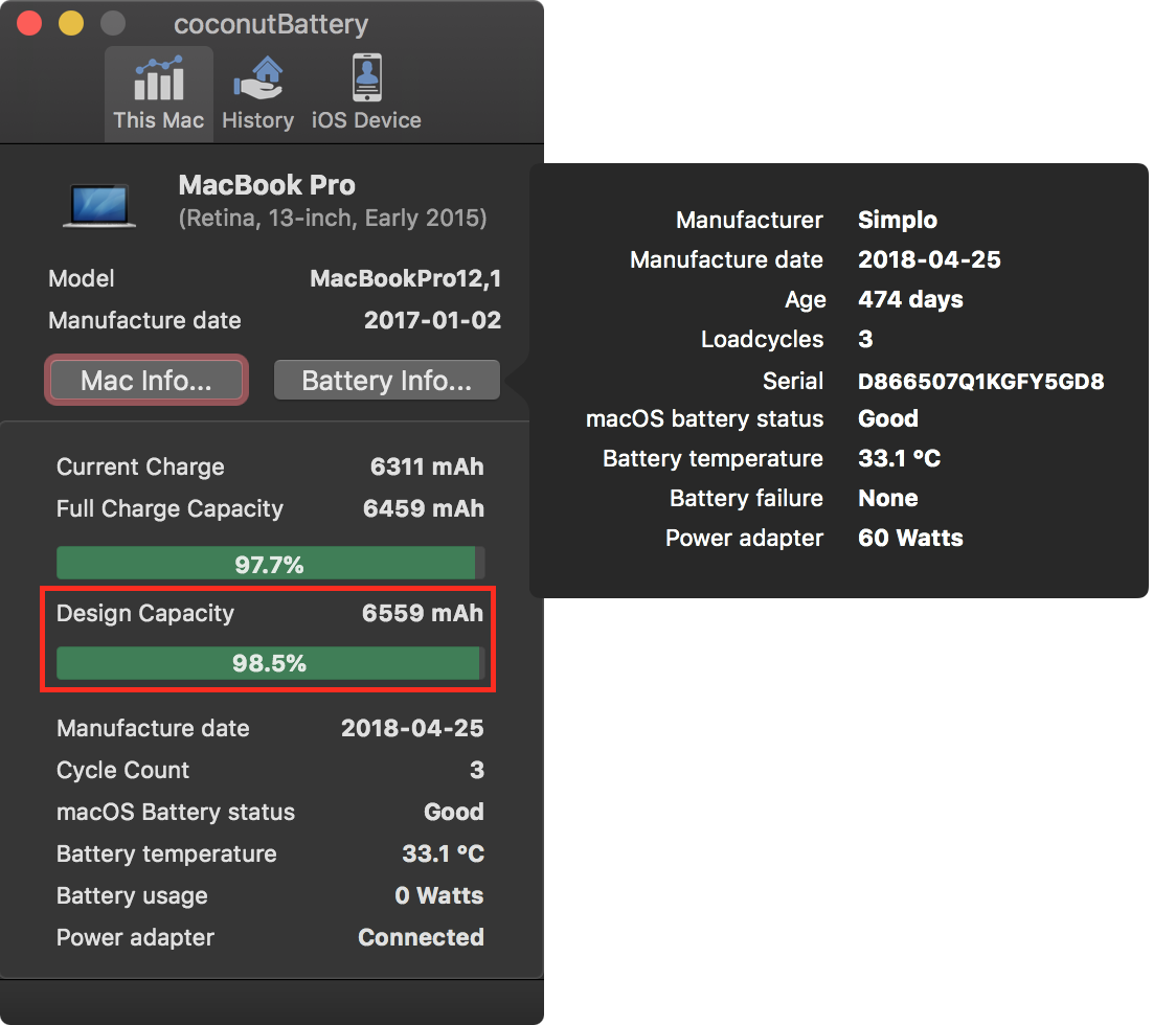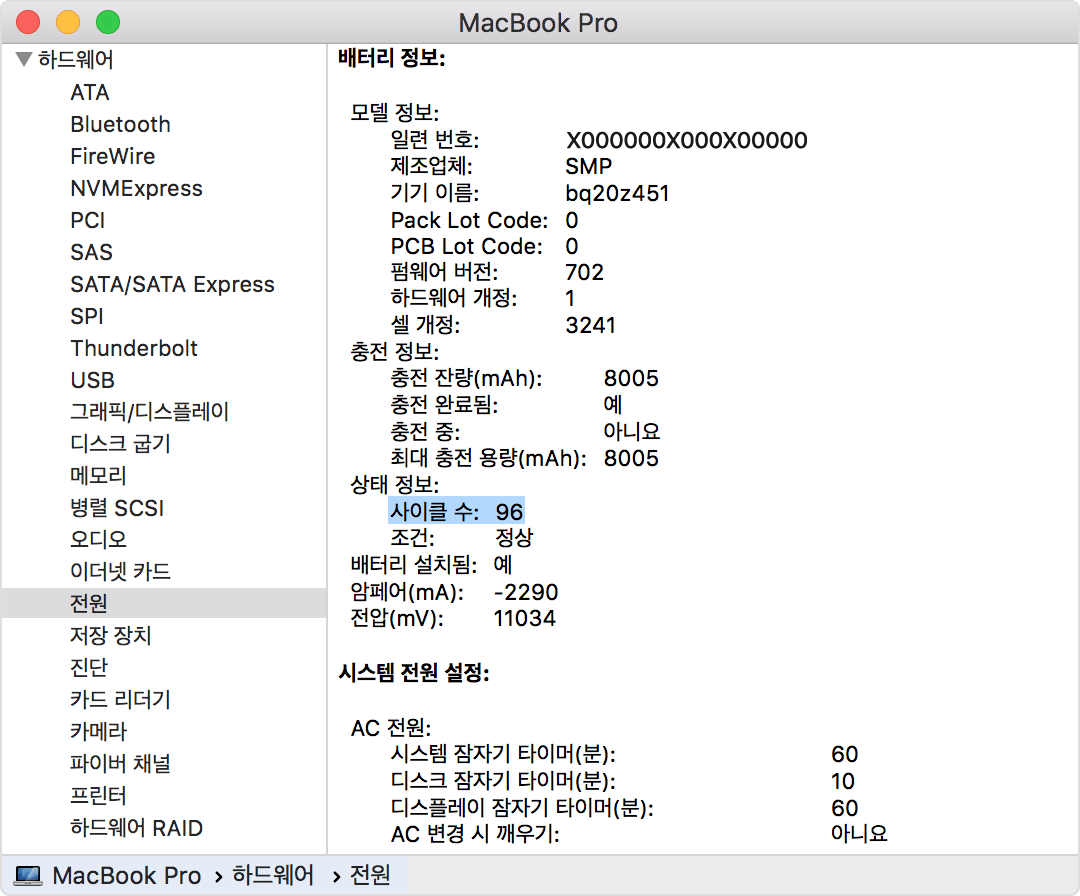 일일이 계산하기 복잡하다면 Coconut Battery 라는 응용프로그램을 사용해도 됩니다.