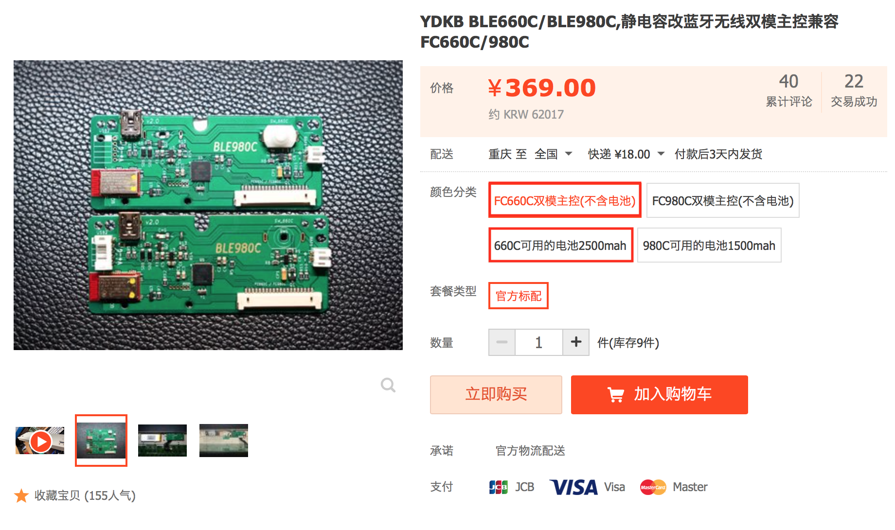첫번째 제품은 FC660C를 무선으로 만들어주는 기판, 그 아래 제품은 기판에 전력을 공급할 배터리입니다. 660C의 배터리가 980C보다 큰 이유는, 배터리가 들어갈 공간이 660C가 더 길기 때문입니다.