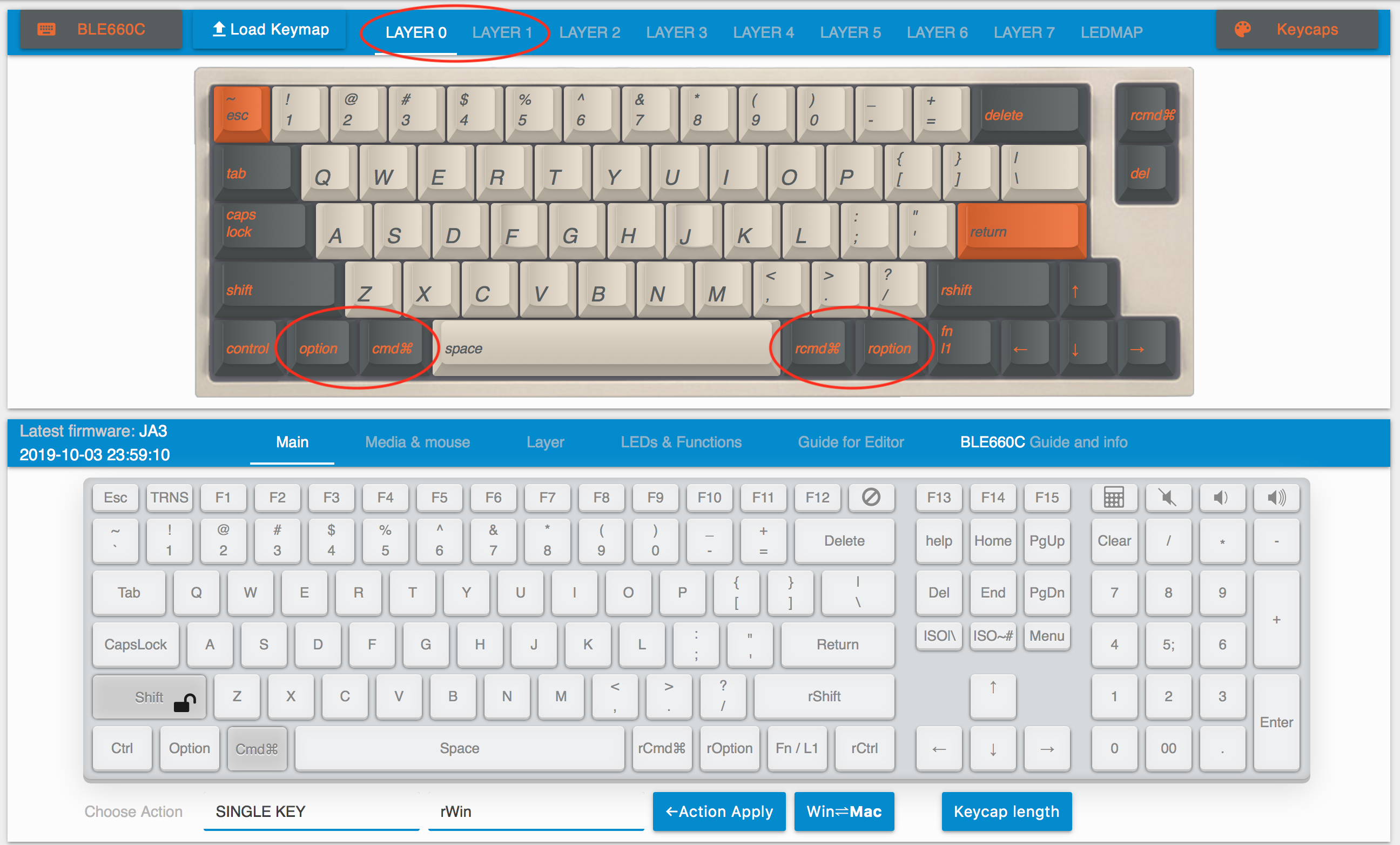 Instructions for this keymap editor 1. Select keyboard from upper left corner. If the keyboard supports multiple layouts, click the Circle icon on the left to select your layout. 2. After the selection, through READ KEYMAP, you can choose Upload file to up