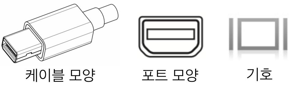 | Mini DP (Mini DisplayPort) DisplayPort와 기능은 완벽히 동일하며, DisplayPort의 소형 규격입니다. 디지털 신호를 출력하며, 버전별로 최대 지원 해상도가 다릅니다. 2K 이상(가로 2560) 해상도를 출력할 때 가장 안정적으로 사용 가능합니다. 버전별 지원해상도 : https://ko.wikipedia.org/wiki/디스플레이포트 ![]() |
