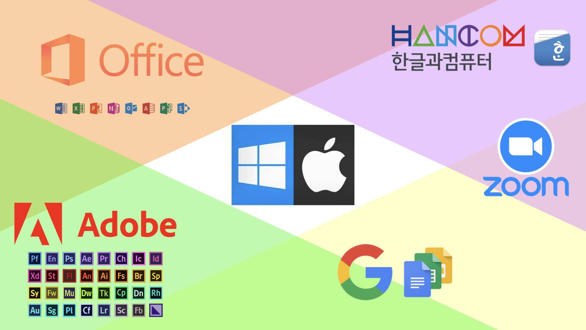 그래서 Windows 에서 사용하는 프로그램을 동일하게 사용하거나, 또는 비슷한 프로그램이 있어야 대학 생활이 원활하기 때문입니다. 다행스러운 점은 이름만 들어도 알만한 응용프로그램들은 모두 Windows용과 macOS용이 갖춰져 있으며, 과거에 비해 현재는 파일의 호환성도 매우 높아져 큰 문제 없이 사용할 수 있습니다. 다만 국내 한정으로 한글문서 작성 프로그램인 한컴오피스의 경우 macOS용 응용프로그램은 2014 버전이 발매된 후, 메이저 업데이트가 없기 때문에, Windows 용과는 일부 차이가 있으며, 사용에 제약이 발생할 수 있습니다.