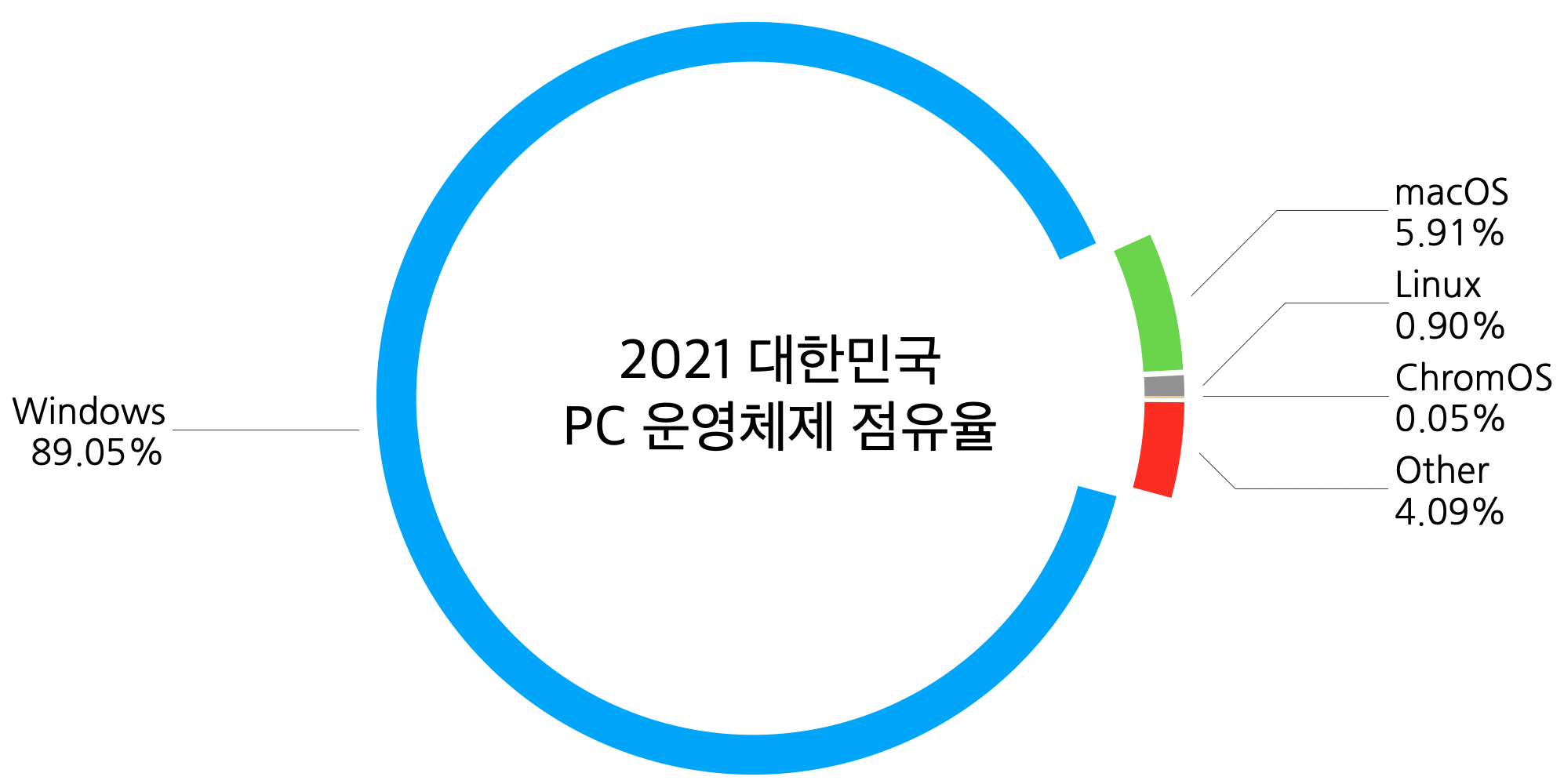 macOS를 사용하면서 가장 중요한건 역시 응용프로그램의 호환성을 따지는 것 입니다. 전세계에서는 75%, 국내에서는 89%의 점유율을 차지하는 Windows 때문입니다. 대한민국의 macOS 점유율은 고작 6% 남짓으로, 대다수가 Windows를 사용하고 있는 만큼 macOS를 사용한다는 것은 Windows와의 호환성을 반드시 따져야 합니다. 대학생이라면 더더욱 호환성을 따져야 합니다.