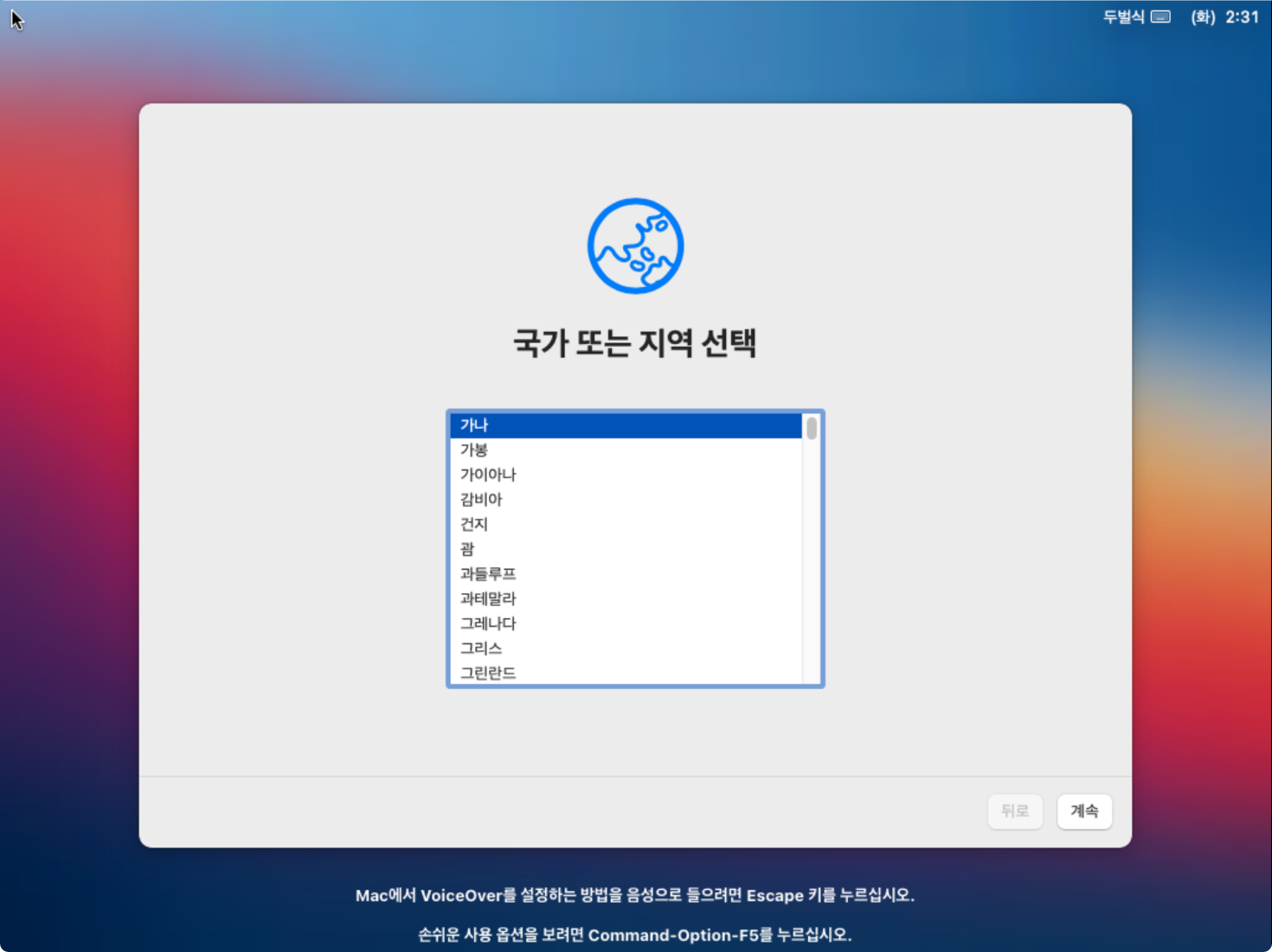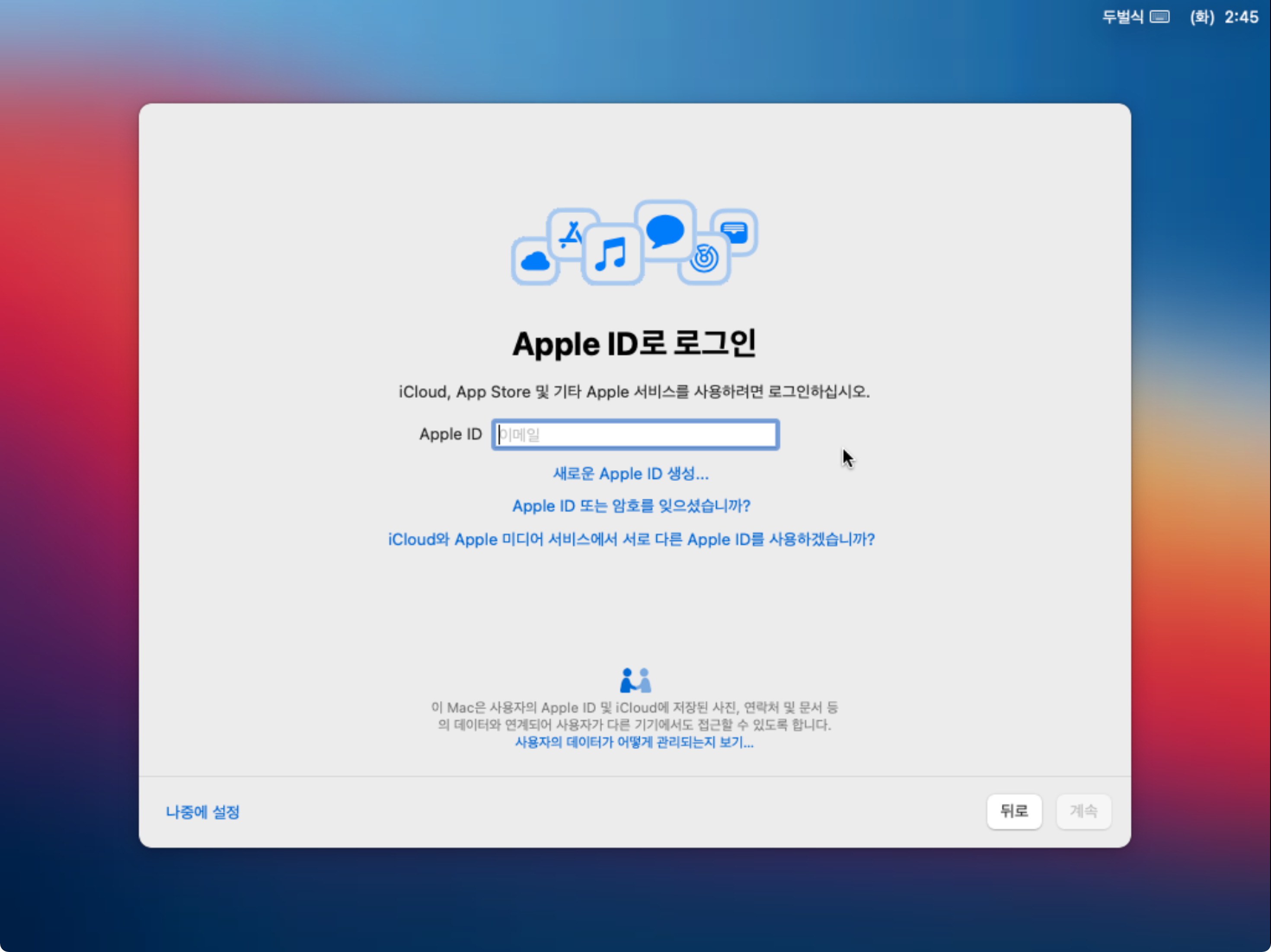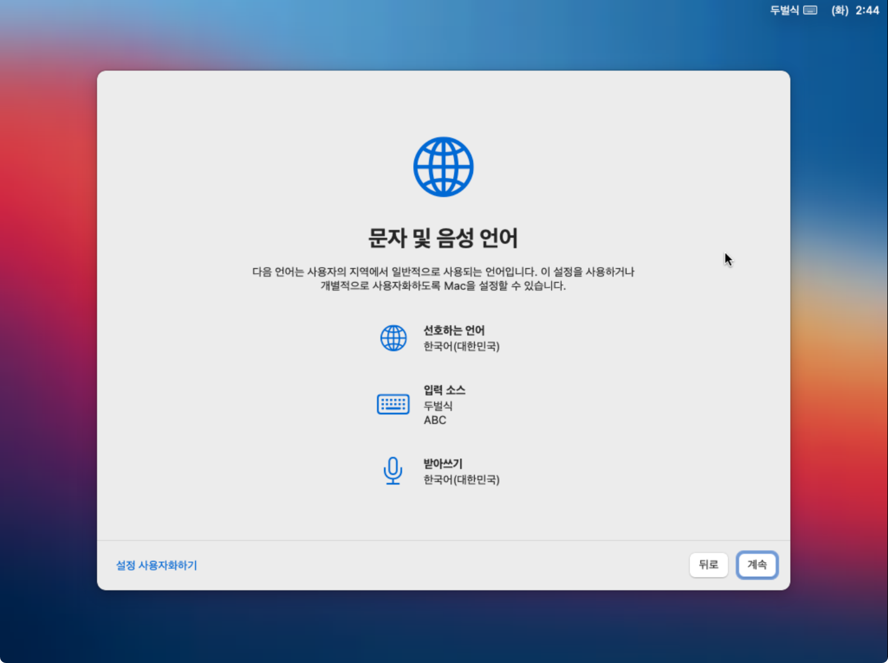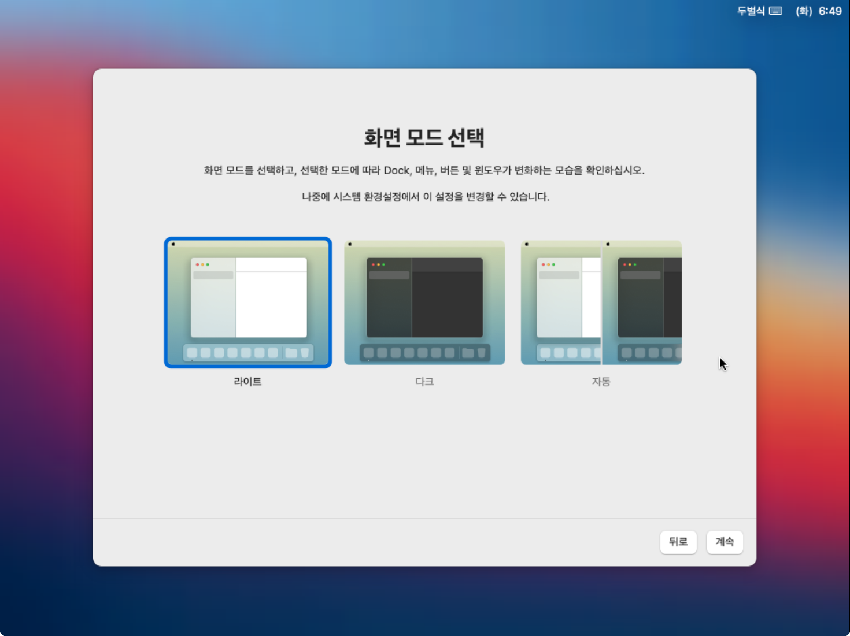 화면 모드 까지 선택했다면 위 화면이 나오고 나서 맥을 사용할 수 있게 됩니다.
