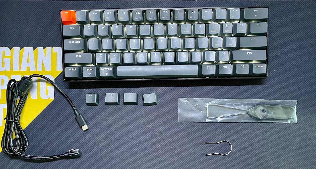 과거 USB-A to USB-C 케이블이 포함된 것과는 다르게 최근 모든 맥에 USB-C type 포트만 있어서 키크론에서도 USB-C to USB-C 케이블로 변경된 점이 눈에 띕니다. 이외에 핫스왑용 스위치 리무버가 포함되어 있습니다. 핫스왑 가능한 제품이라 기존에 장착되어 있는 게이트론 청축을 제거하고 MX스타일의 3pin 또는 5pin 스위치으로 교체할 수 있습니다. 체리MX나 카일, 게이트론, 오테뮤 등의 스위치로 가능합니다.
