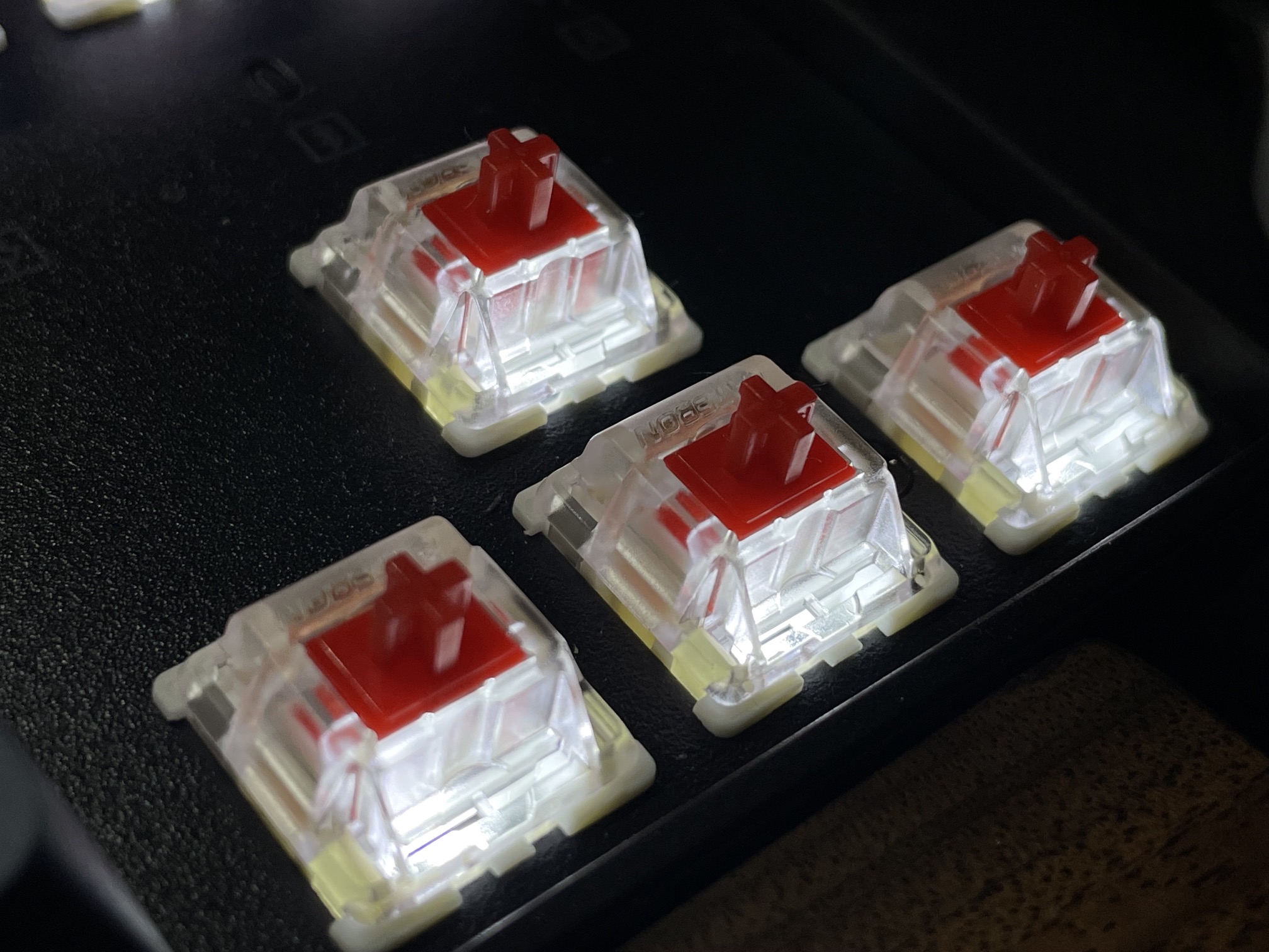 이번에 제공받은 모델은 게이트론 적축입니다. 리니어 방식의 스위치이고, 키압이 낮아 조용한 타건감을 제공하며 구름 타법이 가능한 스위치입니다.