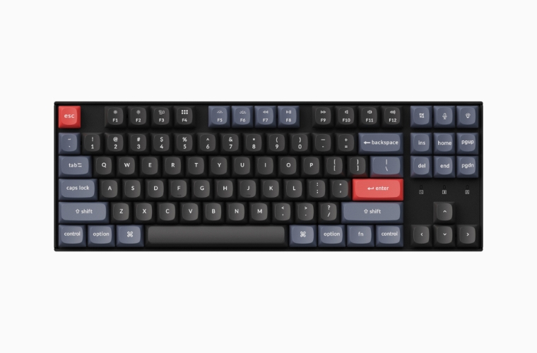 키크론 K8 PRO는 전형적인 87 키 배열의 키보드입니다. 대다수의 기계식 키보드와 비슷한 높이를 가지고 있고, 2단 높이 조절 스탠드가 있어 총 3단계로 높이를 조절할 수 있습니다.