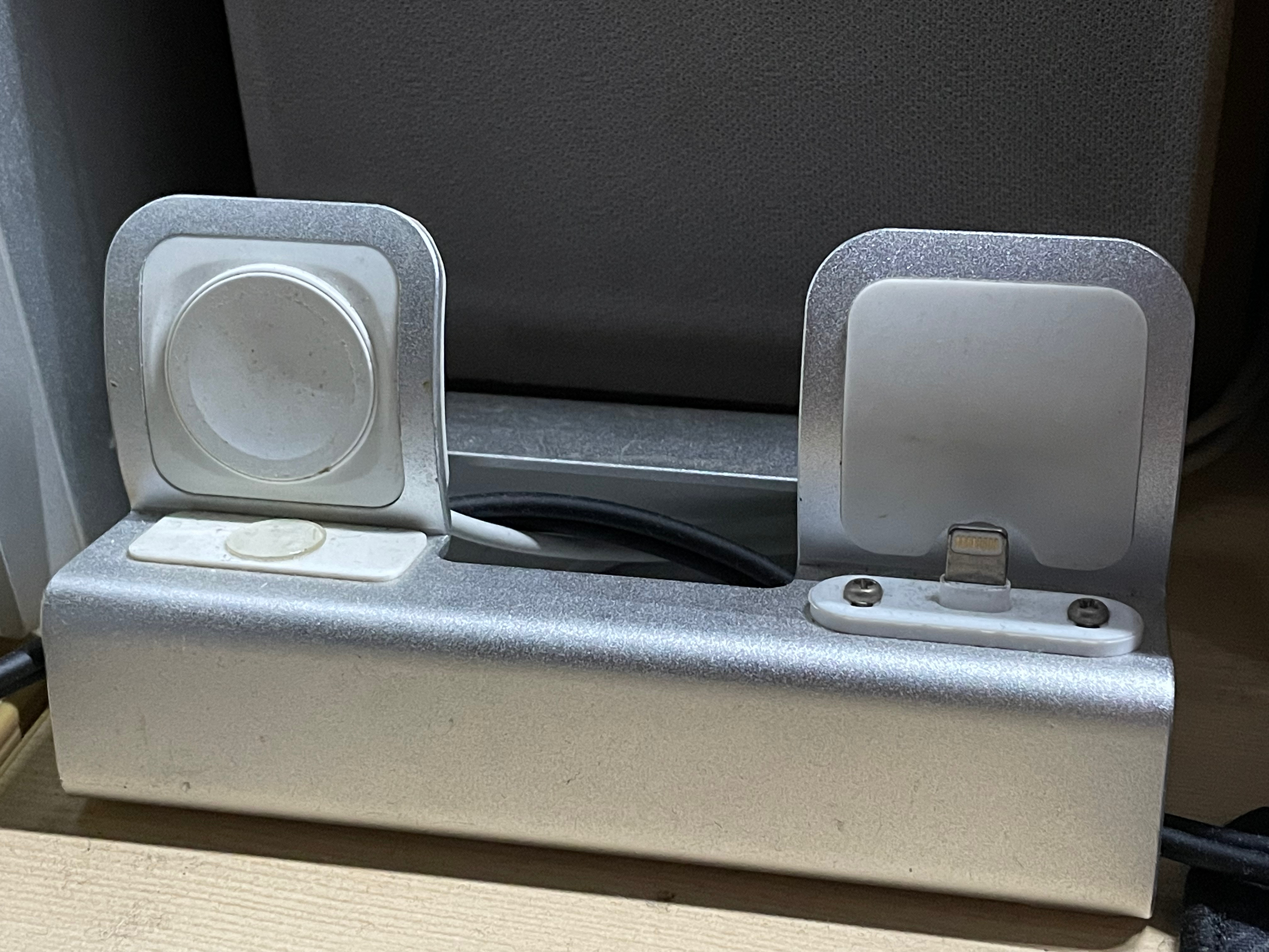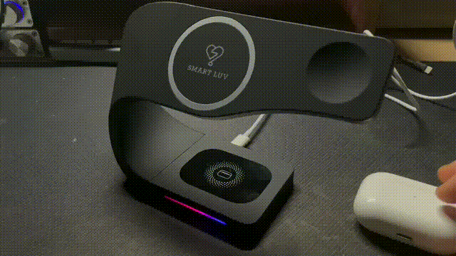 기존에 사용하던 3 in 1 거치대는 위 사진과 같은 제품을 사용하고 있었습니다. 각각의 케이블을 별도로 연결해서 사용하는 제품인데 애플워치와 아이폰은 전면에, 에어팟은 아이폰 거치대 뒤에 연결하는 제품이라 에어팟프로의 탈부착이 매우 번거롭고, 세개의 케이블을 모두 사용해야해서 선 정리를 해야하는 번거로움이 있었습니다. 마침 맥쓰사에 스마트럽 맥세이프 3in1 무선충전기 2차 체험단을 모집하고 있어서 지원 해 보았는데, 운 좋게 당첨이 되었습니다.