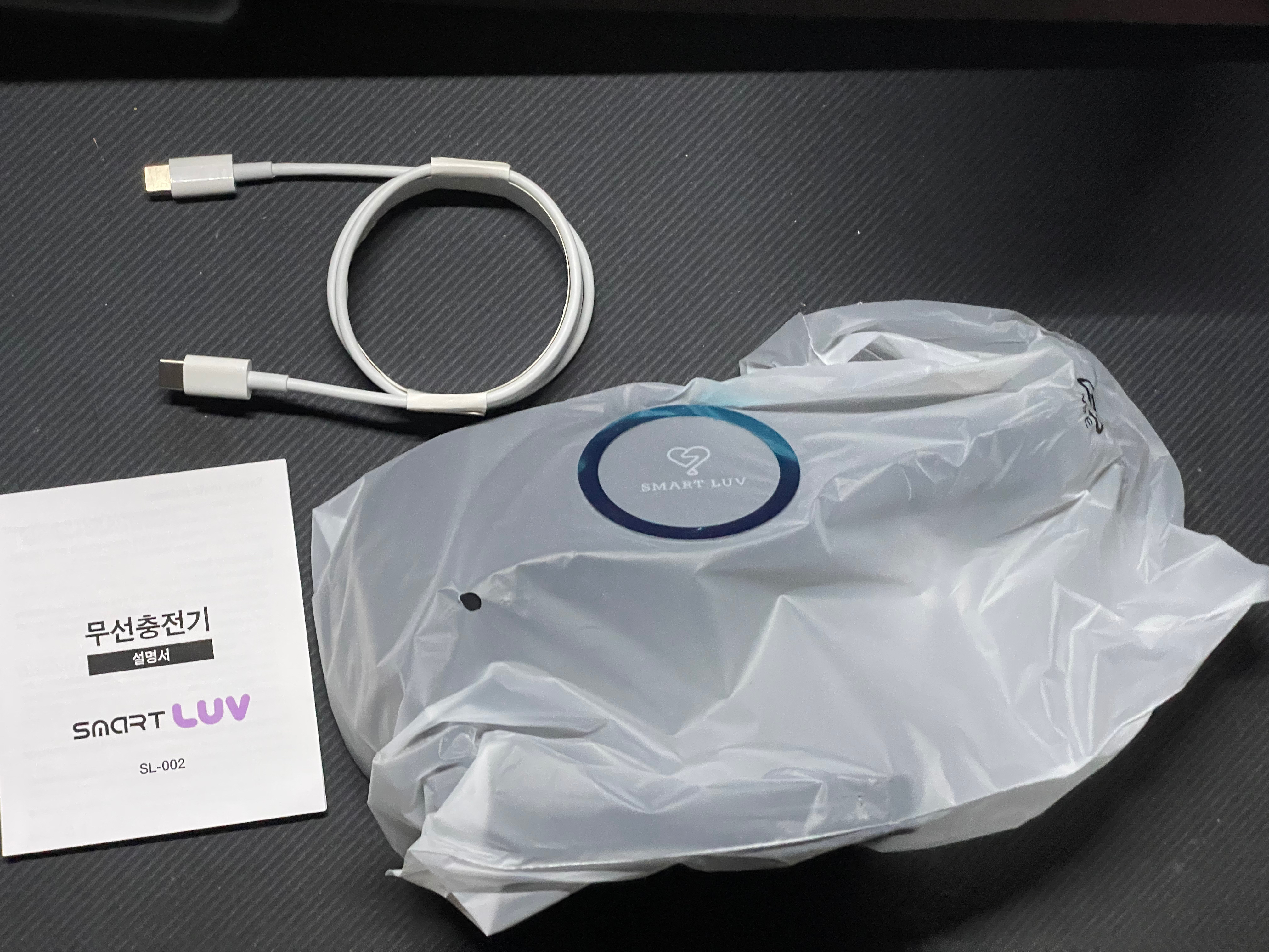 내용물은 USB-C 케이블, 설명서, 충전기 본체, Magsafe Ring이 포함되어 있습니다.