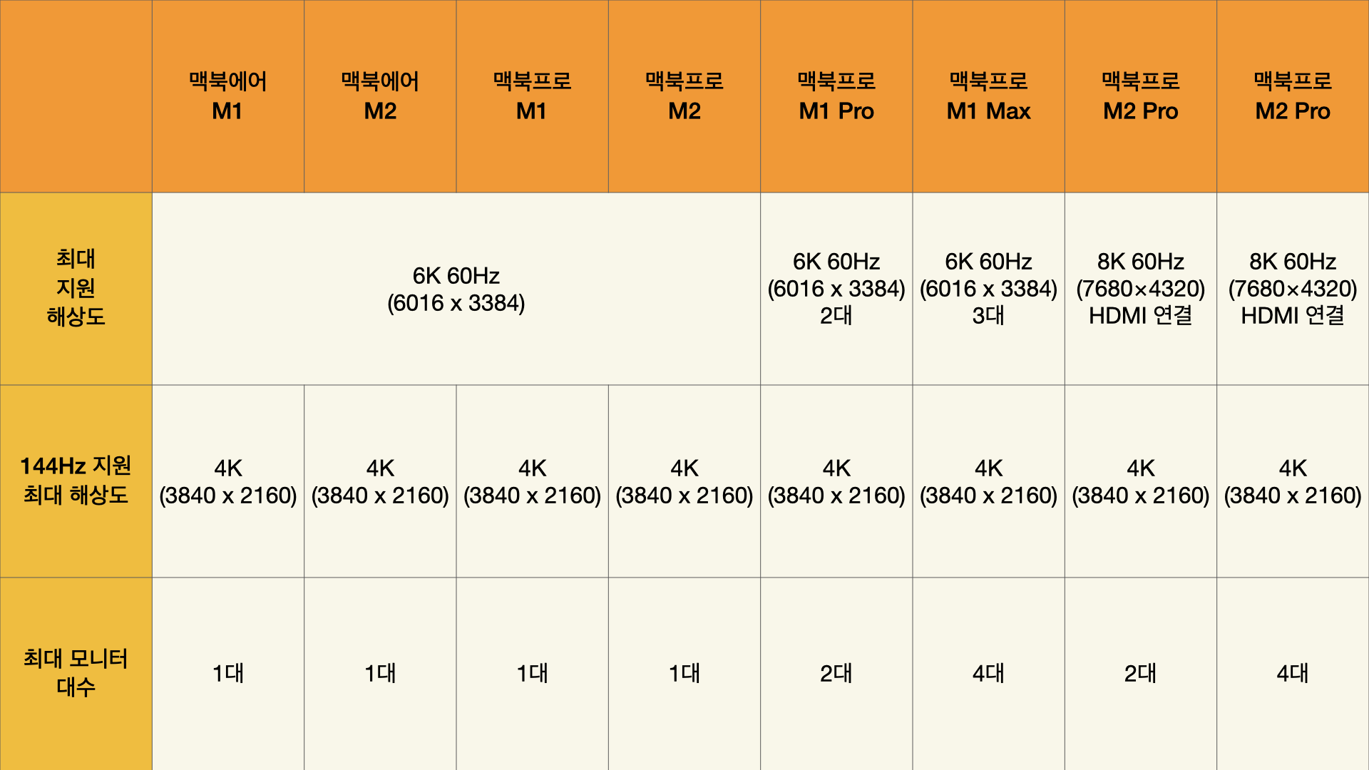 1. M1, M2 칩셋별 공식 모니터 지원 대수